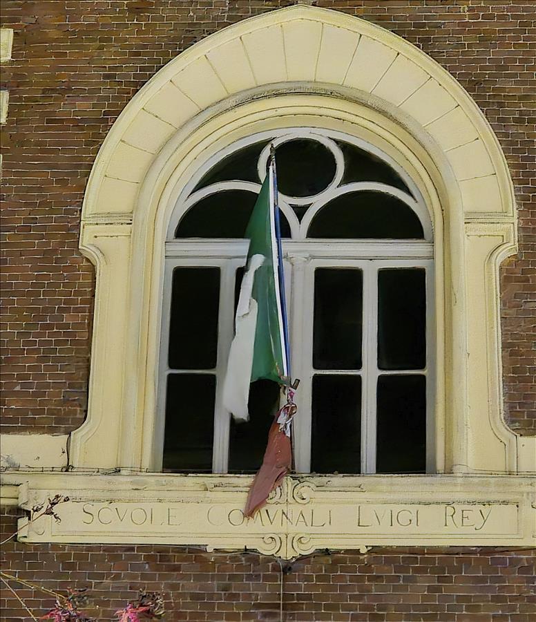 Bandiera Italiana esposta in sulla facciata dell'ex scuola elementare Rey