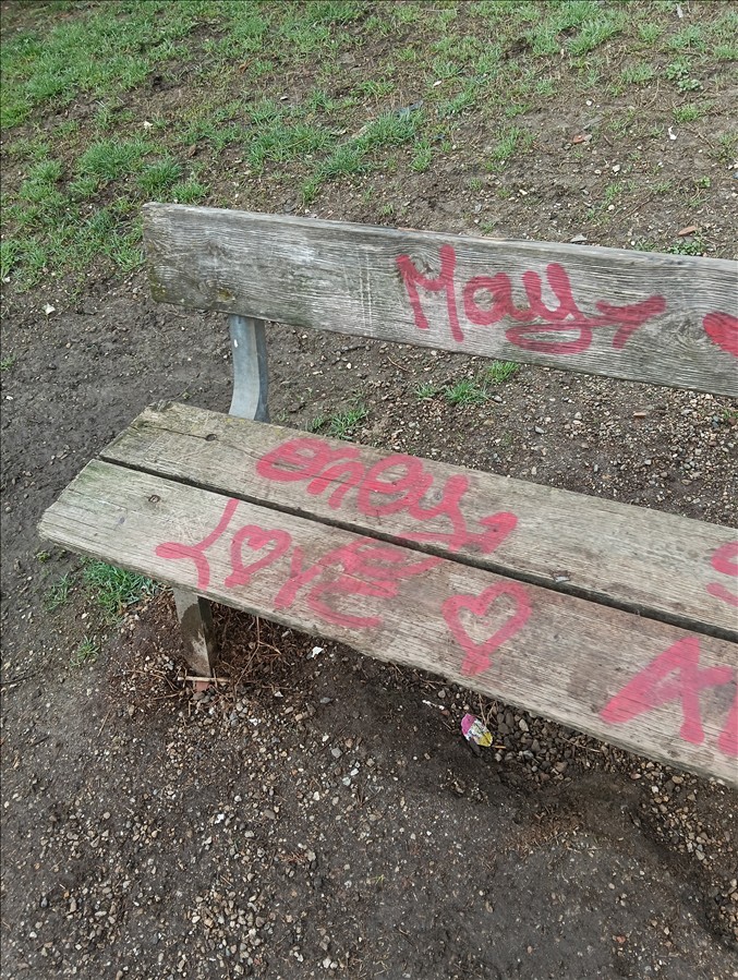 Vandali che rovinano le panchine (che sono fatte per sedersi), fontana non funzionante e rotta (tra poco arriverà la bella stagione, e già il pomeriggio le temperature arrivano a 16 gradi, per cui i cani hanno sete)