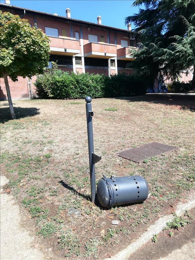 sabato mattina 30 luglio 2022, il cestino dei rifiuti era a terra staccato dal suo supporto.