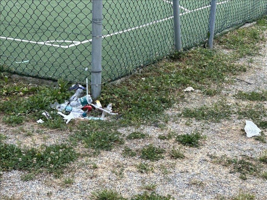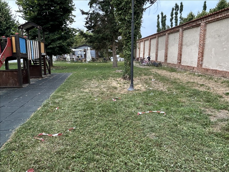 C’è immondizia e sporcizia sparsa per tutto l’area giochi del parco del Castello