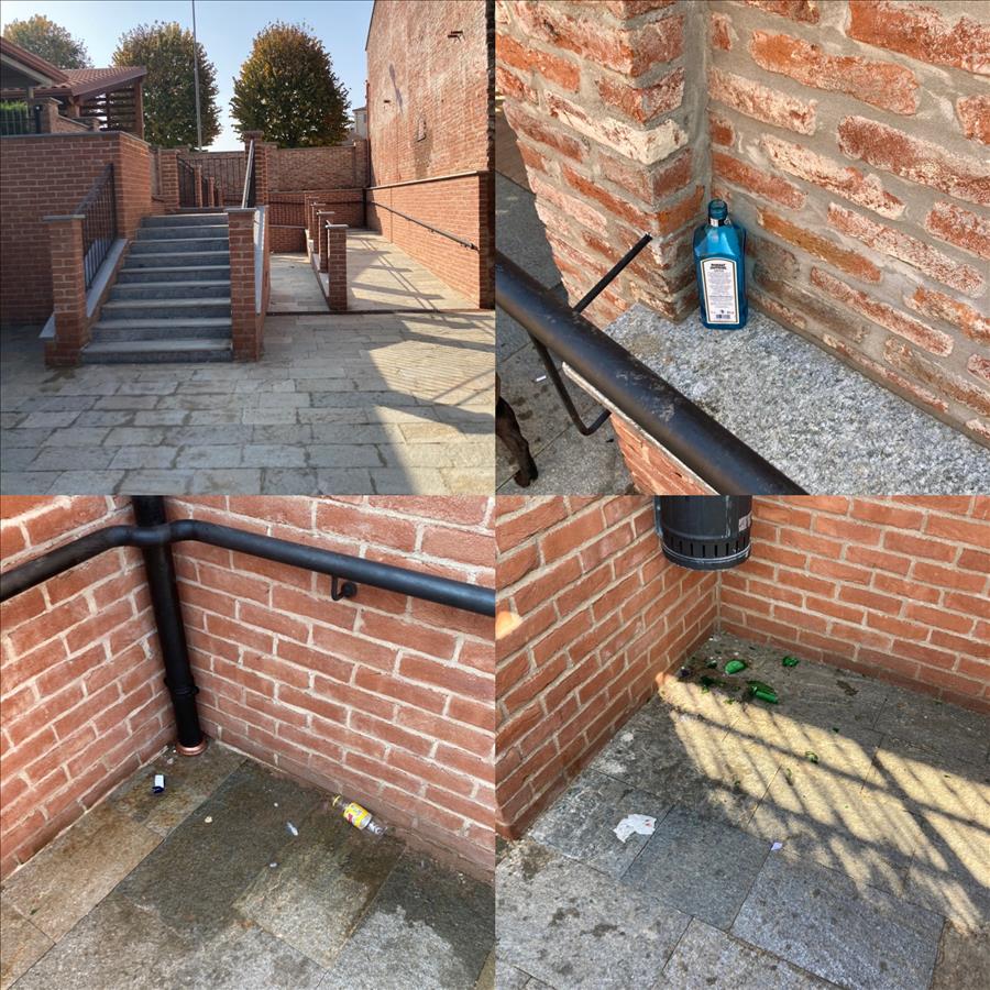 Nelle scalinate che portano al parco dalla piazzetta della chiesa, dove è presente il cancello automatico, abbiamo trovato numerose volte rifiuti quali sigarette, patatine, fazzoletti, ecc. ma soprattutto bottiglie di vetro anche rotte. Oltre che da incivili, risulta pericoloso per bambini e animali. Mi piacerebbe che venissero effettuati dei controlli specialmente nel tardo pomeriggio/sera e nei weekend quando la presenza di questi “incivili” è più frequente.