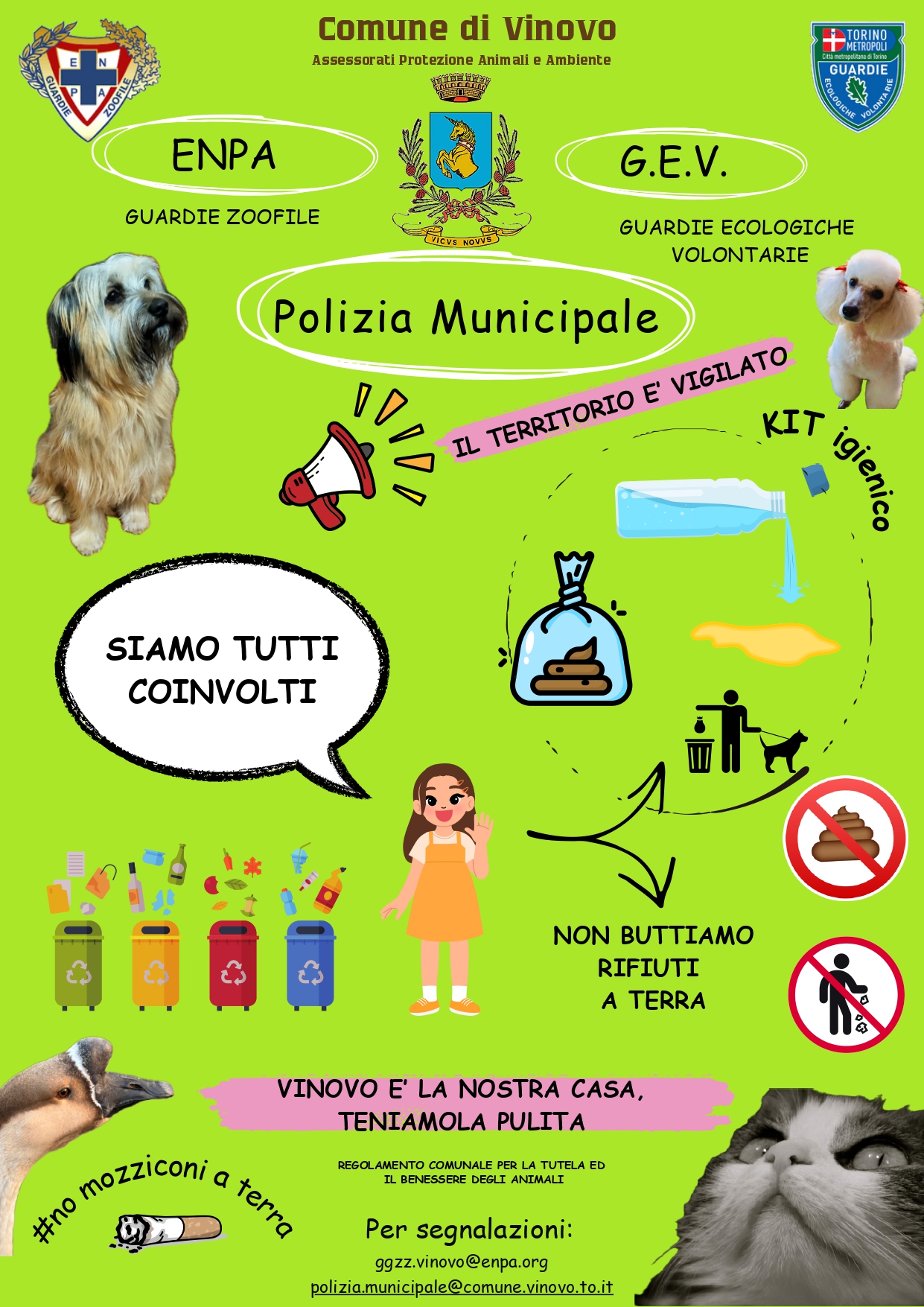 Con Deliberazione della Giunta Comunale n. 106 del 14/09/2020 l'Amministrazione Comunale ha siglato con l'ENPA di Vinovo un Protocollo operativo in materia di animali d'affezione.