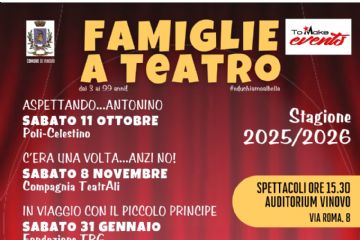 In seguito al grande successo della prima edizione, al via sabato 11 ottobre la seconda edizione della rassegna teatrale FAMIGLIE A TEATRO, promossa da To Make Eventi in collaborazione con il...