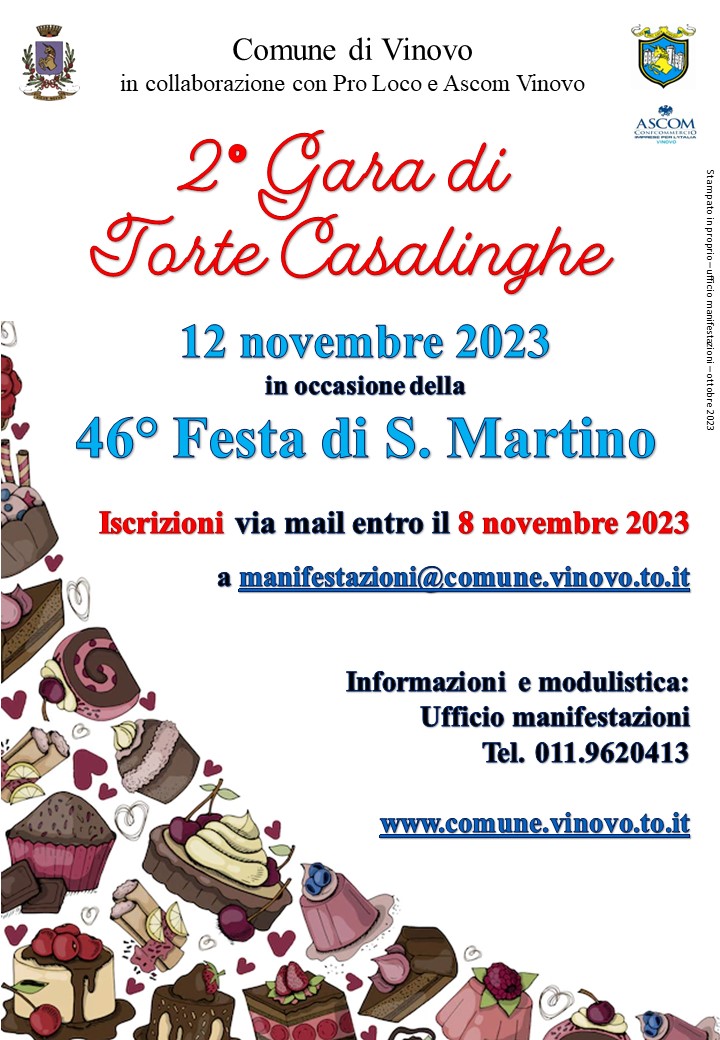 In occasione della 46° Festa di San Martino il Comune di Vinovo in collaborazione con Pro Loco e Ascom Vinovo organizzano la seconda gara di torte casalinghe.