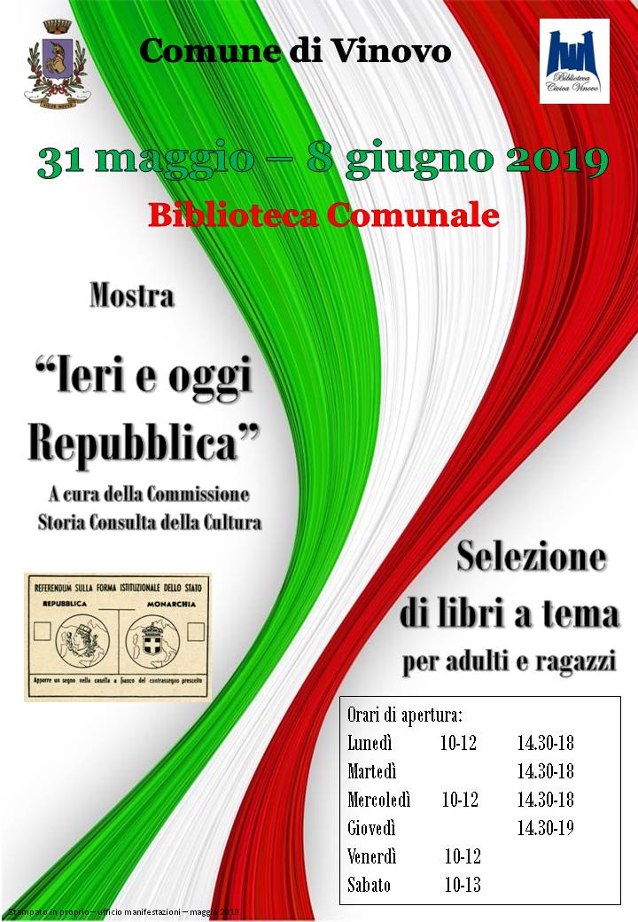 Il Comune di Vinovo in occasione dei festeggiamenti per la Festa della Repubblica propone, attraverso la mostra tematica "Ieri e oggi Repubblica" di far vivere a Vinovo e ai Vinovesi un momento di approfondimento storico legato alla nascita della Repubblica e alla redazione della Costituzione.