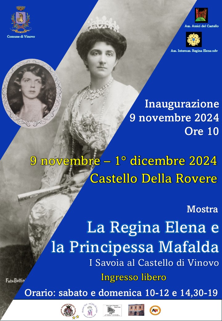 Sabato 9 novembre alle ore 10:00, nella cornice del Castello Della Rovere di Vinovo, fatto edificare tra la fine del XV e l’inizio del XVI secolo dal Cardinale Domenico Della Rovere, l’Associazione Amici del Castello, con la collaborazione tecnica del Comune di Vinovo, presenta la mostra Regina Elena e Principessa Mafalda, un’esposizione dedicata alla figura della sovrana e alla sua secondogenita, la Principessa Reale Mafalda di Savoia, nell’ottantesimo anniversario dalla sua morte nel Campo di sterminio di Buchenwald il 28 agosto 1944. Il progetto espositivo è a cura dell’Associazione Internazionale Regina Elena Odv con il Coordinamento Sabaudo.