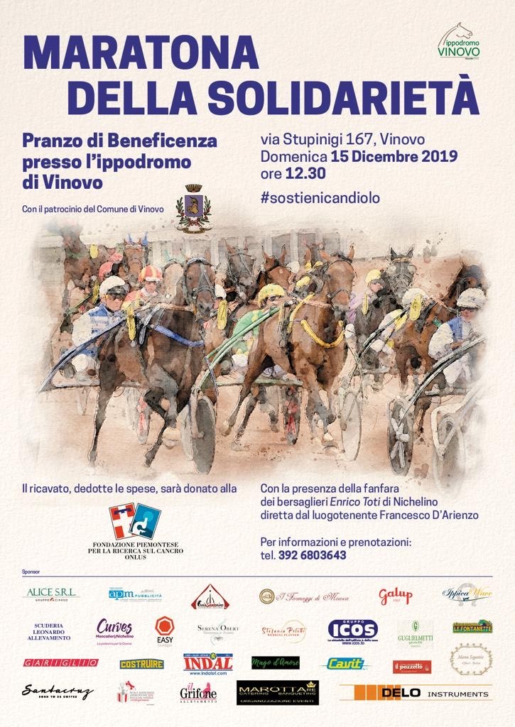 Domenica 15 dicembre alle ore 12.30 pranzo di beneficenza presso l'Ippodromo di Vinovo. Il ricavato sarà devoluto alla Fondazione Piemontese per la ricerca sul cancro onlus.