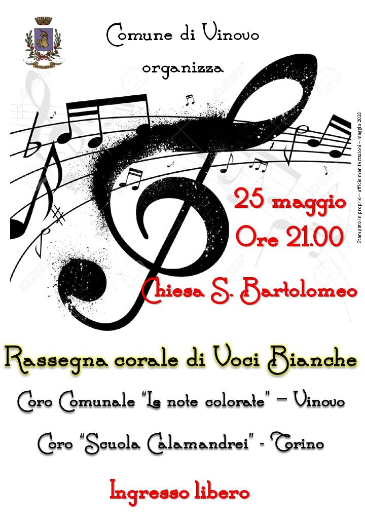 Il Comune di Vinovo organizza una piccola rassegna corale di Voci Bianche presso la Chisa di S. Bartolomeo il 25 maggio p.v. alle ore 21.00