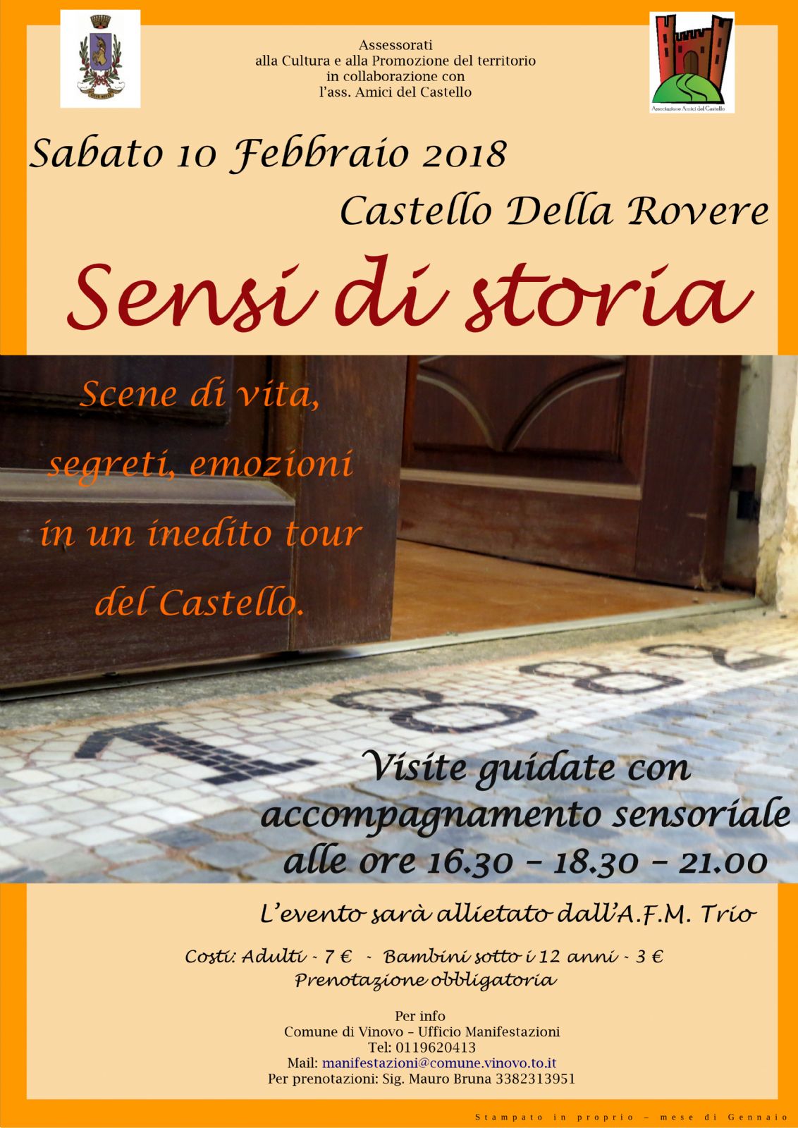 Le sorprese saranno la caratteristica principale di questo insolito itinerario il quale, grazie ai costumi e all’allestimento di veri e propri tableau vivant, svelerà personaggi, segreti e vicende del maniero vinovese.