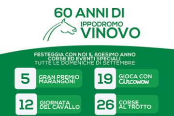 In occasione del 60° anniversario dell'Ippodromo di Vinovo, inaugurato l'8 settembre 1961, per la disputa del Gran Premio Avv Carlo Marangoni sarà festa grande!