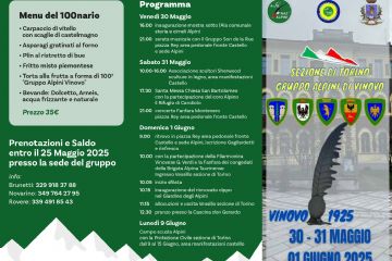 Grande festa per il 100° Anniversario di fondazione del Gruppo Alpini Vinovo. Ricco il programma di appuntamenti. Vi...