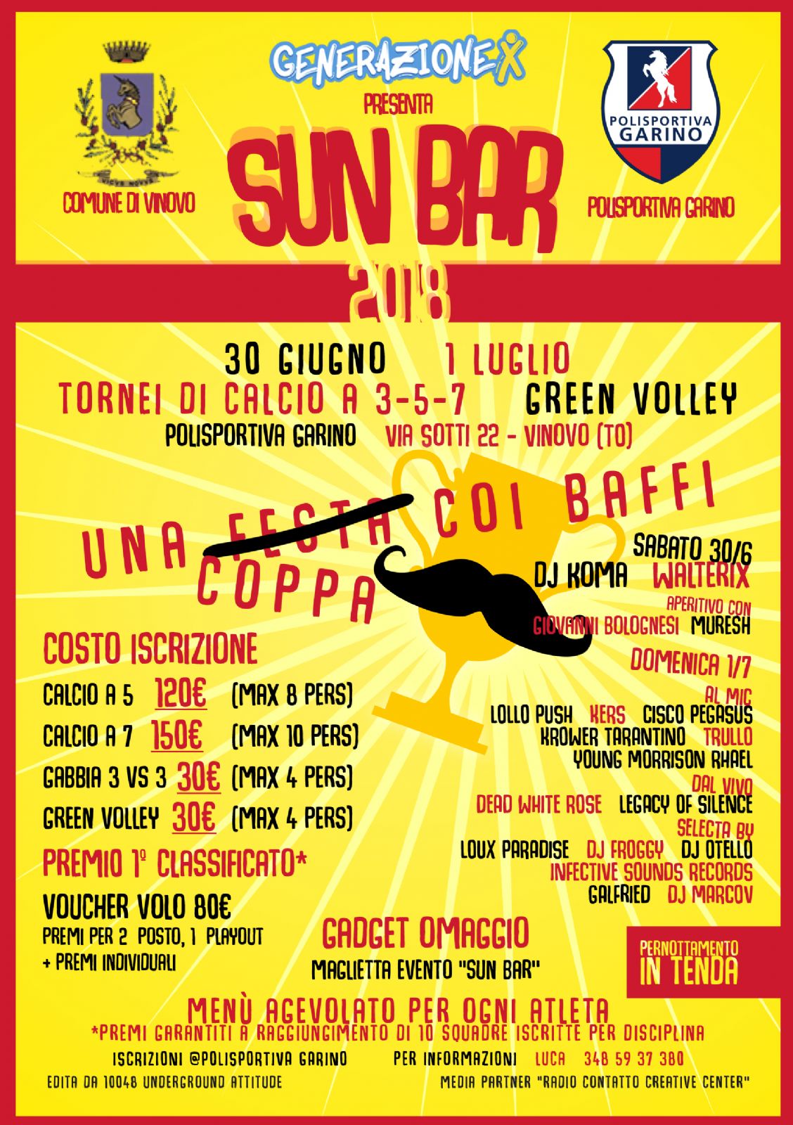Ritorna, in vesti totalmente rinnovate, “Sun Bar”, l’appuntamento estivo dei giovani dell’interland torinese appassionati di sport e musica organizzato dalla Consulta giovani di Vinovo “GenerazioneX”.