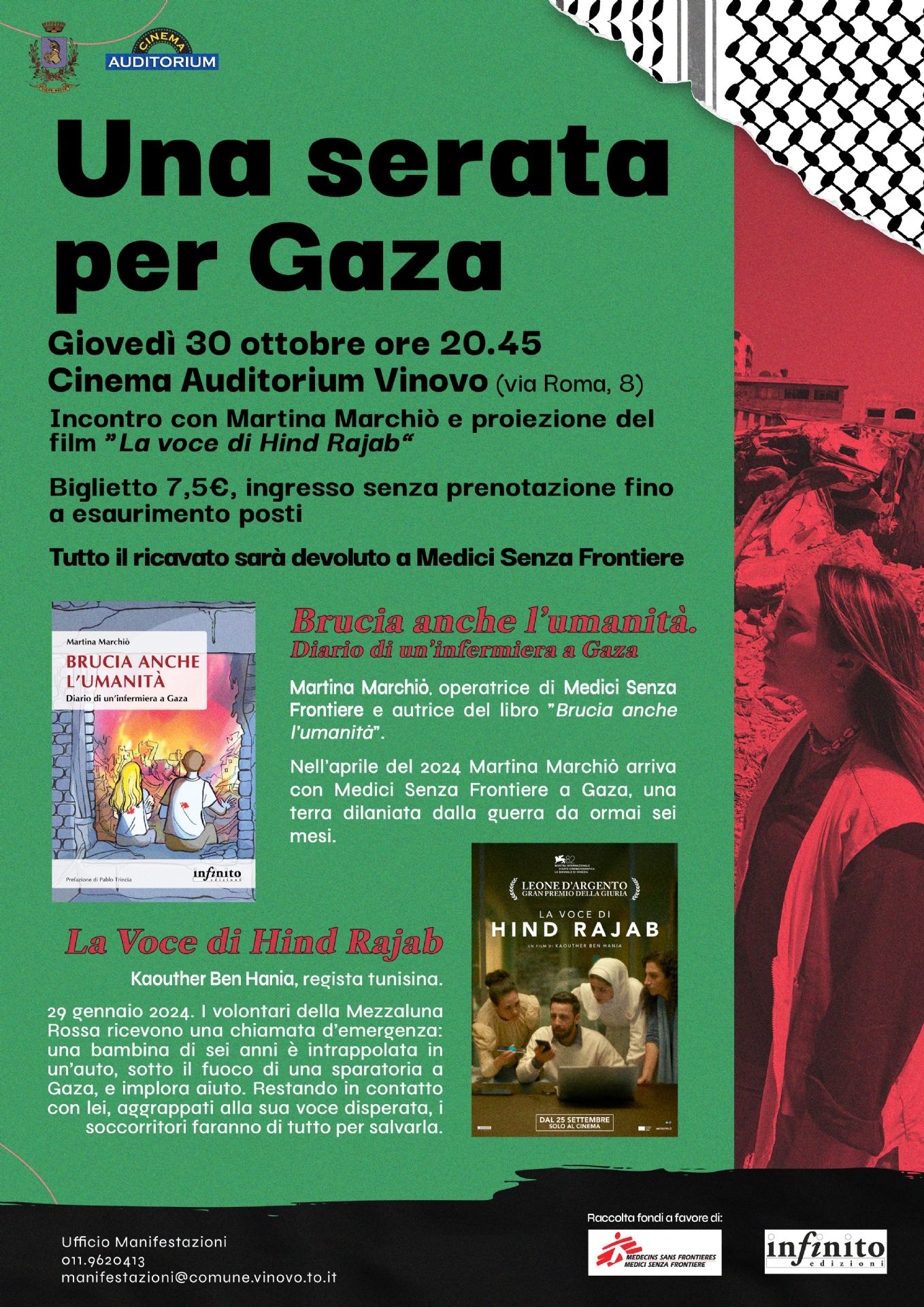 Incontro con Martina Marchiò, operatrice di Medici Senza Frontiere e autrice di Brucia anche l’umanità, e proiezione del film premiato a Venezia La voce di Hind Rajab di Kaouther Ben Hania.