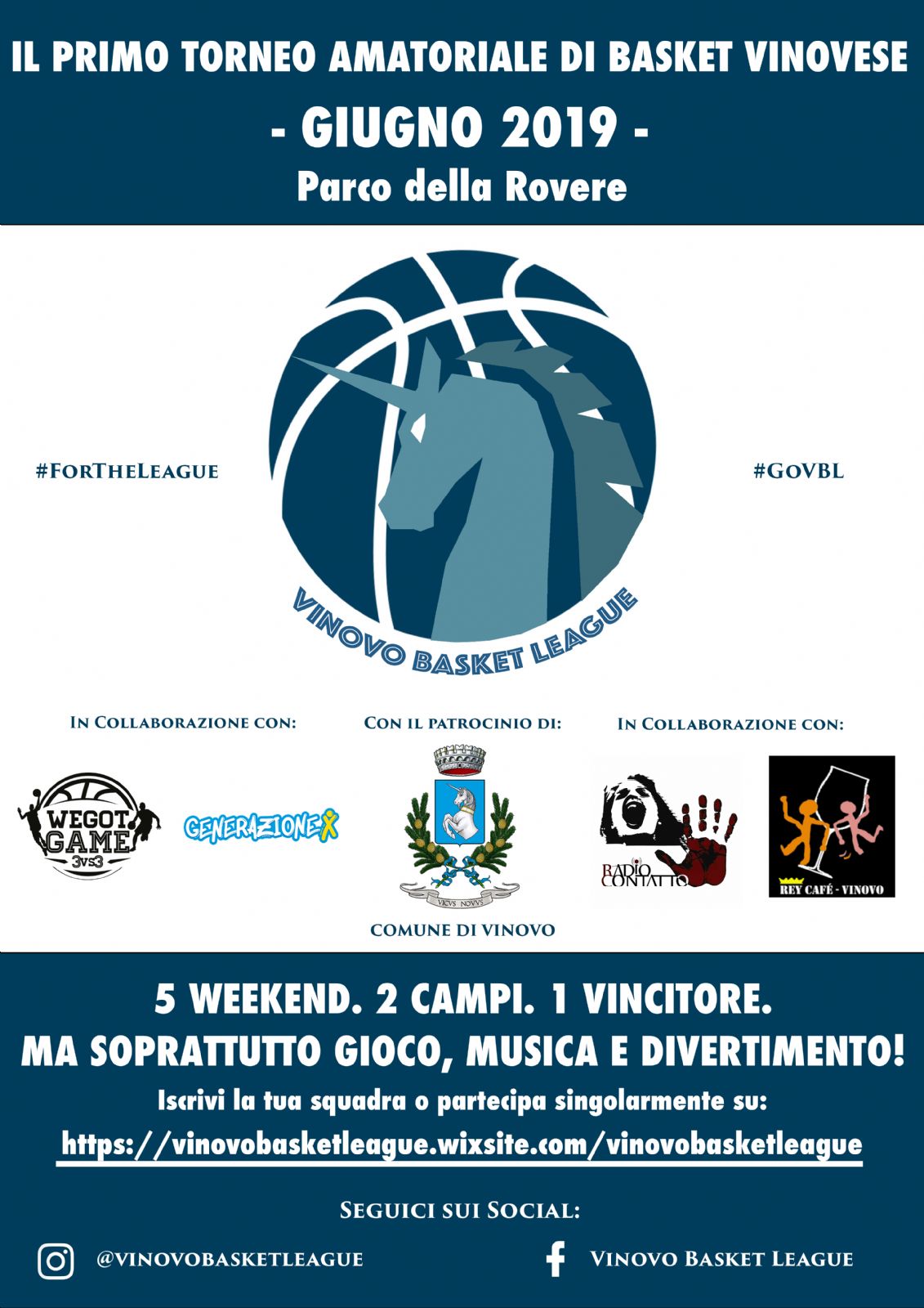 Nel mese di giugno 2019 si terrà il primo torneo amatoriale di basket organizzato da "Vinovo Basket League" presso il Parco Della Rovere. Potranno partecipare ragazzi e ragazze dai 16 anni.