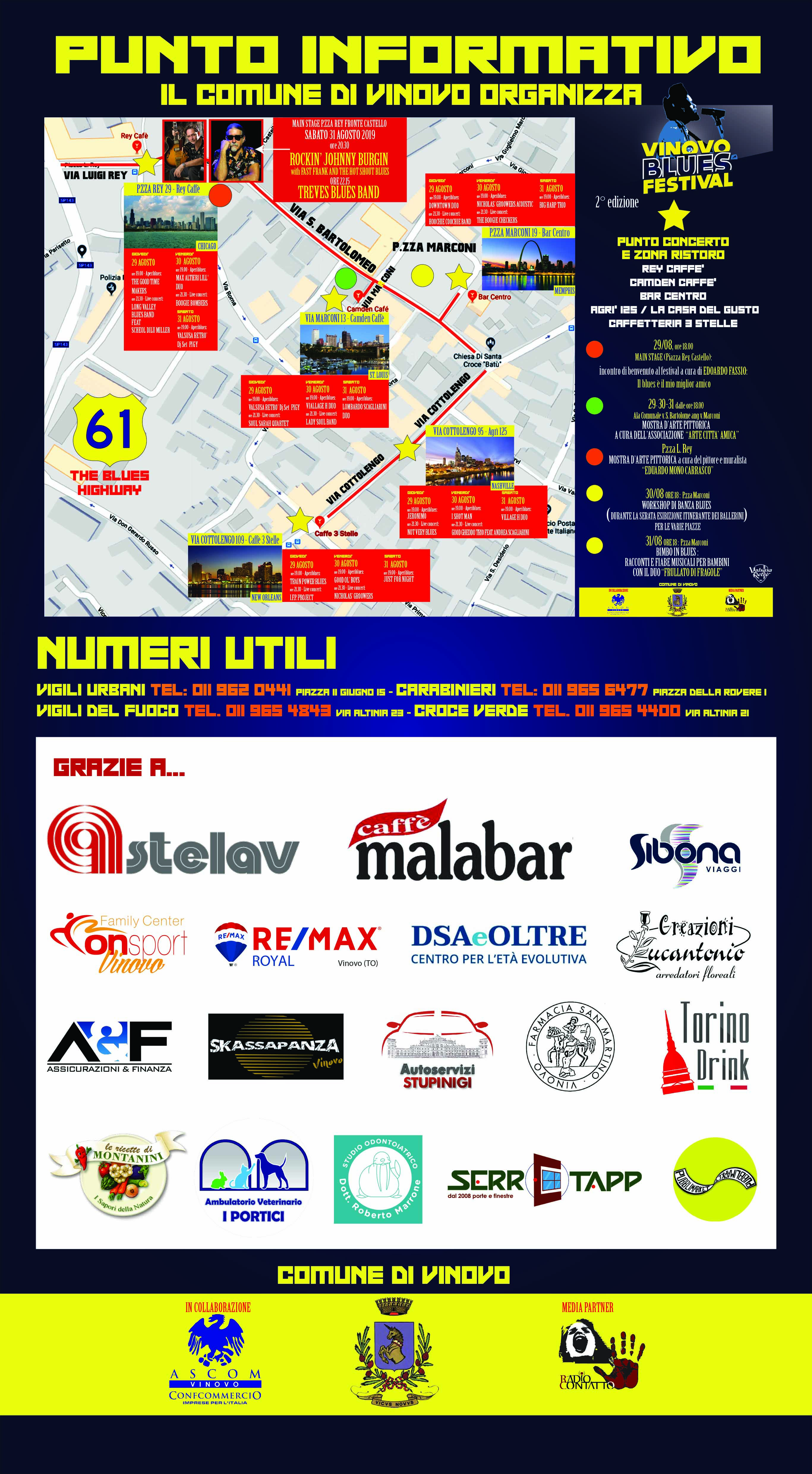 Il percorso sonoro suggerito dal cartellone della manifestazione - organizzata dal Comune di Vinovo e Ascom Vinovo, media partner Radio Contatto, la web radio di Vinovo - è un crescendo che culmina negli eventi del sabato sera con due headliner di statura mondiale: il chitarrista e armonicista di Chicago Rockin’ Johnny Burgin e la Treves Blues Band che calca i palchi nazionali ed internazionali dal 1974