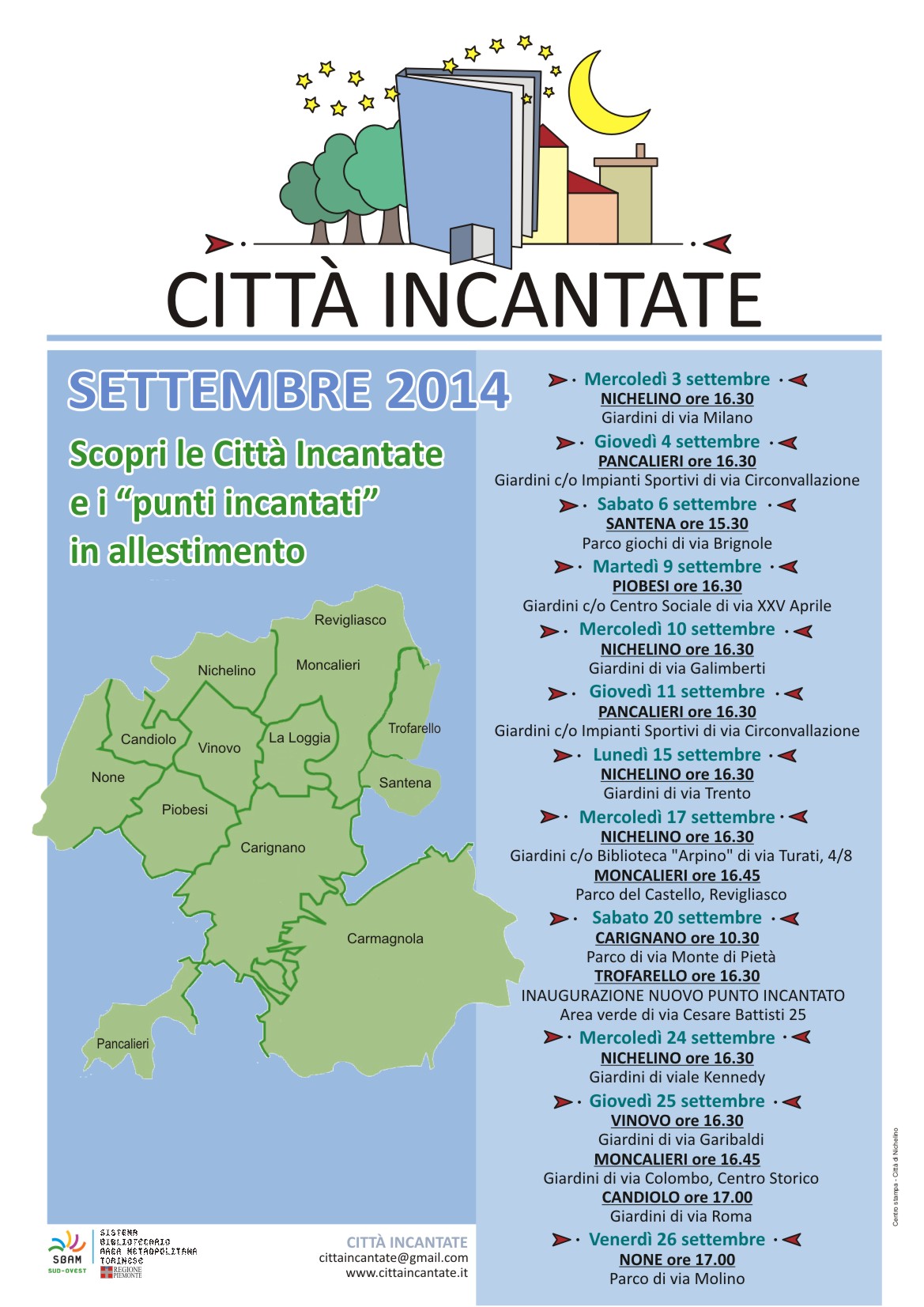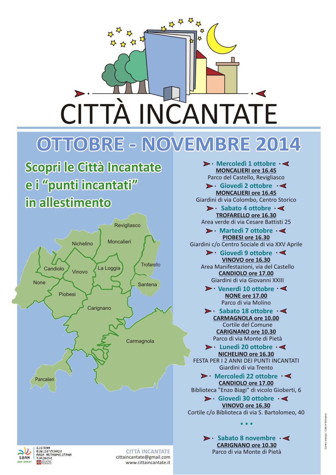 Prossimi appuntamenti a Vinovo: giovedì 25 settembre ore 16,30 nei Giardini di via Garibaldi; giovedì 9 ottobre ore 16,30 nell'Area Manifestazioni; giovedì 30 ottobre 2014, ore 16,30 nel cortile della biblioteca civica.