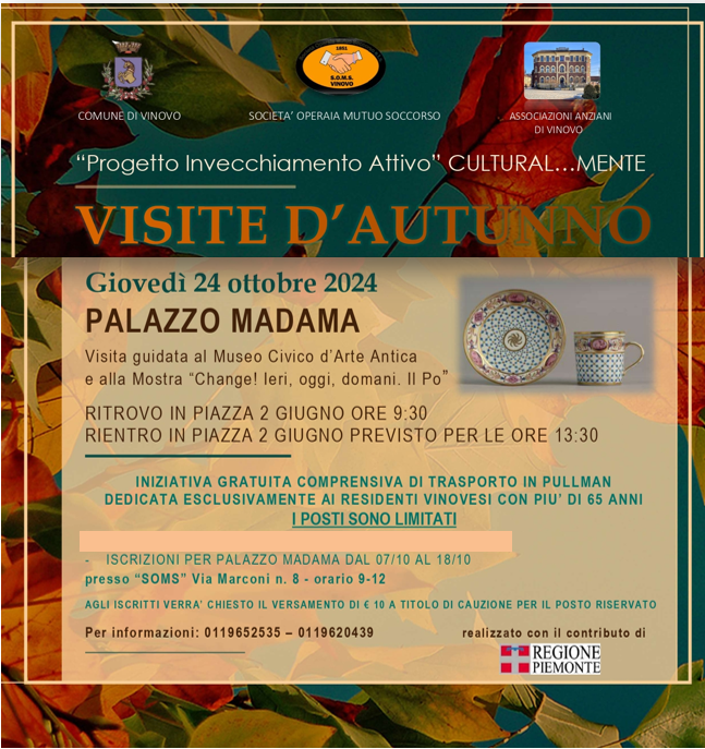 Nell'ambito del progetto di invecchiamento attvio "Cultural...mente" è stata organizzata una visita guidata a Palazzo Madama e alla mostra temporanea "Change!" in data 24/10/2024.